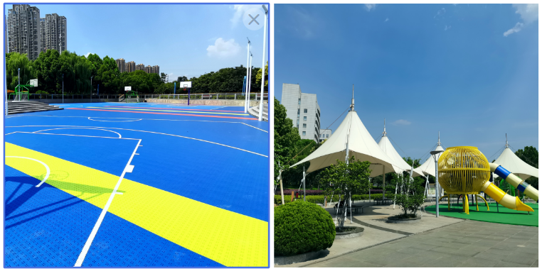 新海公園由于建園時間較早,使用率較高,在常年的風吹雨淋之下飽經滄桑,很多基礎設施老化,為更好的提高居民游園體驗,去年開始計劃籌備設施翻新,今年5月底完全投入使用。其中主要對籃球場鋪裝面進行翻新改造,并引進了多種新型運動娛樂設施。